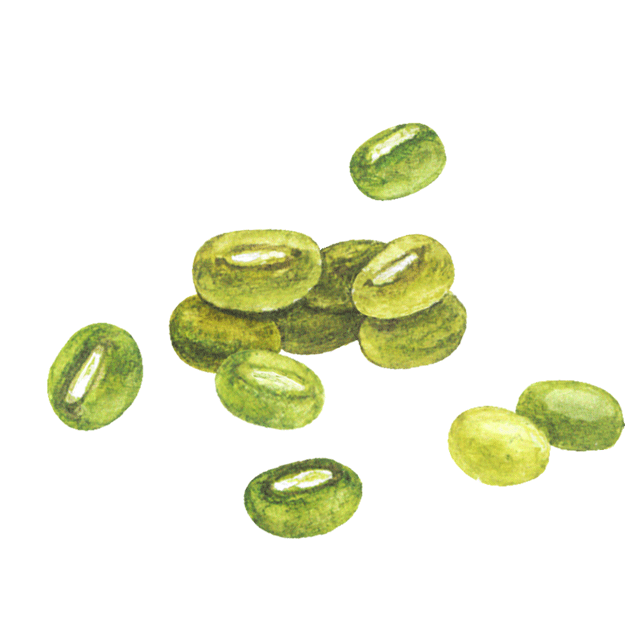 緑豆・たまねぎ・しいたけなどと一緒にコンソメを入れてスープにします。体の余分な水分や熱をとるため、梅雨や夏バテの時期に利用します。