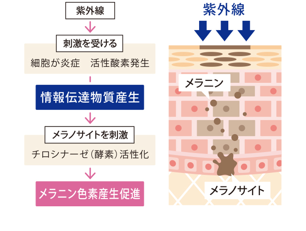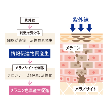 肌のバリア機能が弱いと、肌荒れを起こし、ターンオーバーが乱れてシミになりやすいことはご存知でしたか?また、紫外線によってダメージを受けやすいと炎症が起こり、普通肌よりも多くメラニンが作られることもあります。