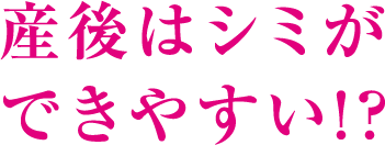 また、顔のシミが気になっている傾向があり、出産後からシミ対策を行う方も多くいます。ただ、出産の前後は、ホルモンバランスの乱れで、身体に様々な変化が起こりやすい一方、育児の大変さから自分へのお手入れが不足になりがちです。産後に後悔しないように、シミ対策商品で「予防」するのもおすすめです。
