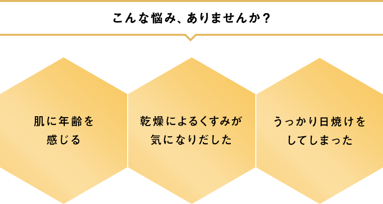 メラニン生成と排出バランスが崩れ、メラニンが表皮層に溜まってしまう状態を「シミ」と言います。一定の周期で新陳代謝を繰り返すことを肌の「ターンオーバー」といい、通常は約28日で行われています。ターンオーバーが乱れるとシミ、くすみ、乾燥など肌のさまざまなトラブルにつながります。メラニンの生成を抑えるだけでなく、肌をきちんと整えることが大切です。