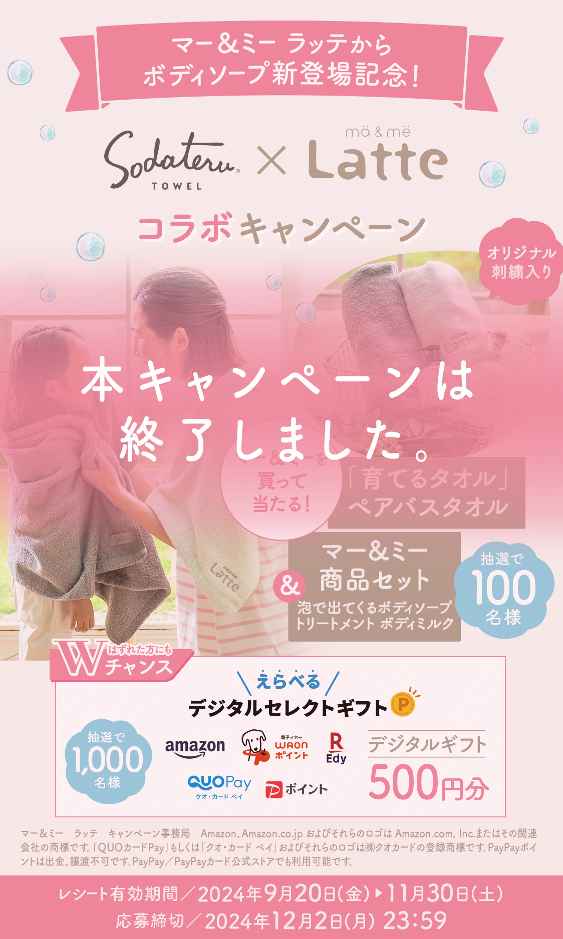 キャンペーン事務局 : https://echoes-maandme-latte-m.zendesk.com/hc/ja/requests/new