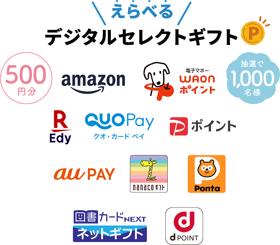 えらべるデジタルセレクトギフト 500円分 抽選で1,000名様