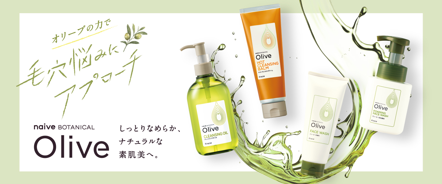 厳選した小豆島産オリーブ葉エキス※配合。100%天然精油で仕上げたボタニカルの心地よい香りの洗顔&クレンジングシリーズ。