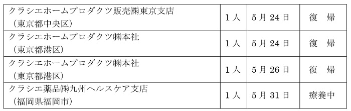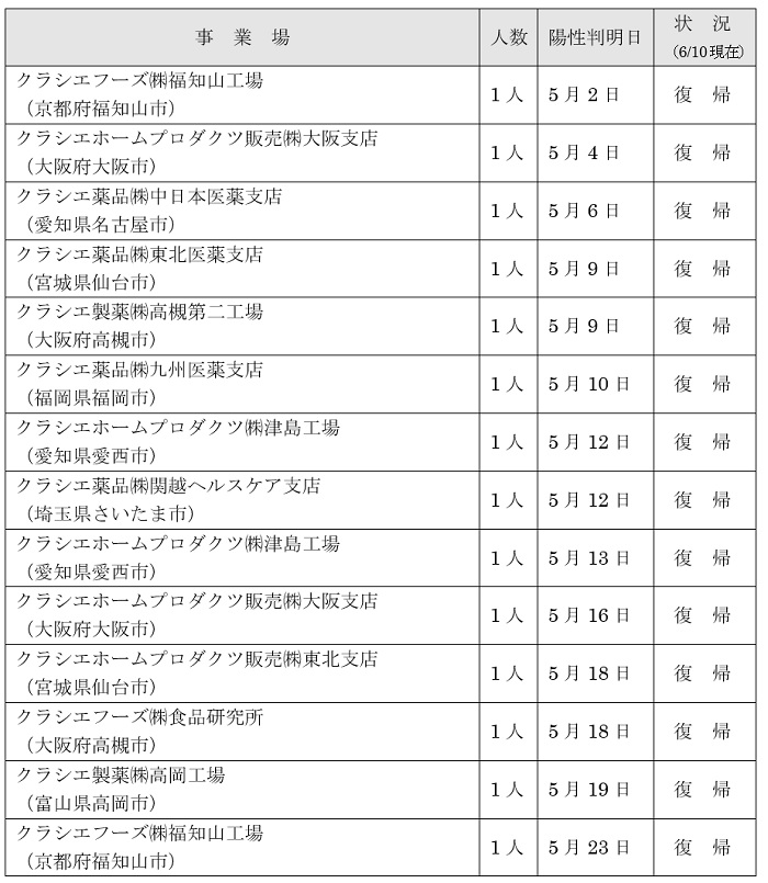 従業員の感染状況については以下の通りです。