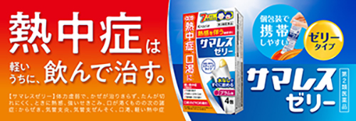 日頃の水分補給にはスカイウォーターを、軽い熱中症を感じたらサマレスゼリーを使用し、今年の夏も暑さに負けないようお過ごしください。
