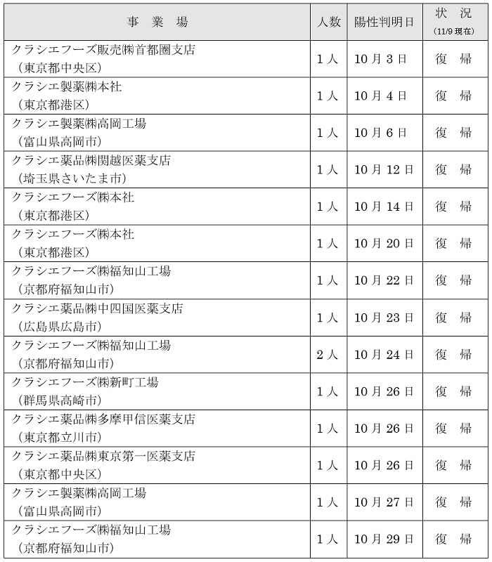 従業員の感染状況については以下の通りです。