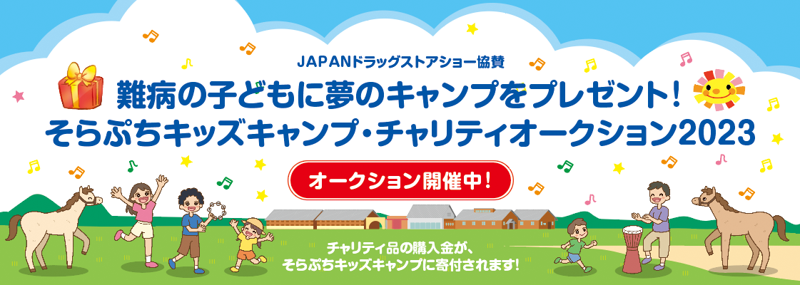 第23回JAPAN ドラッグストアショー@ オンライン企画内にて、「そらぷちキッズキャンプ・チャリティオークション(オンライン)」が開催されています。