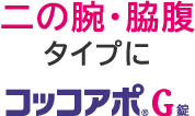 ピンクの「コッコアポG錠」は、脂質代謝が落ちて二の腕・脇腹に脂肪がつきやすいタイプに、