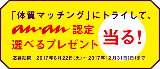 - 「体質マッチング」にトライ頂き、かつ応募フォームにご入力頂ける方のみを対象とさせていただきます。