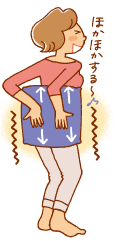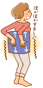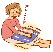 そこで、ざぶとんを使ってみましょう。温めたい部分にざぶとんを当て、両手でブルブルさせることで、手は疲れにくく、広範囲な場所に均等に力をかけることができます。