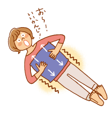 気づきにくいものですが、おなかが冷えているという人は案外多いのです。そんな時には仰向けに寝て、おなかにざぶとんをのせます。そして両手を小刻みにブルブルと1分間ほど揺するだけ。おなかが温まるだけでなく、腸が刺激されて、便秘の方にもおススメです。
