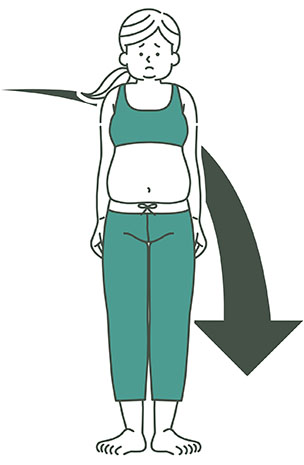 筋肉量が低下すると、それに伴って基礎代謝が落ちていきます。日常的に体を動かす習慣がなければ、筋肉は20代を境に年々減っていき、そのぶん、脂肪が増えやすくなります。