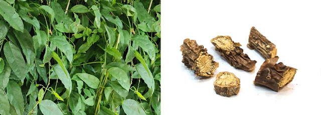 オオツヅラフジのつる性の茎および根茎を横に切り、乾燥させたものです。
