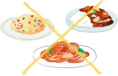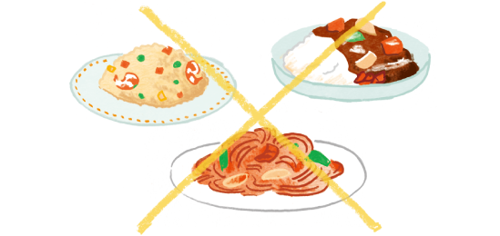 「油物はなるべく控えて。特に、カレーやパスタ、唐揚げなど、炭水化物と油の組み合わせは、腸の負担になり、お腹ぽっこりの原因にもなるので避けましょう。」(河村さん)