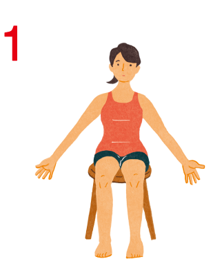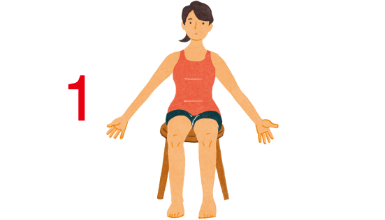 1.椅子に座り、足は腰幅に。肩の力を抜き、手のひらをパー全開に。