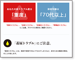 注意すべき尿トラブルや、おしっこトラブルがどのくらいの重症度なのかもわかります。