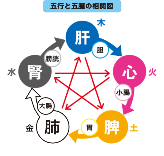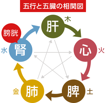「腎」は、腎臓という意味ではなく、内臓の機能のうちの内分泌系、泌尿・生殖器系、免疫系、中枢神経系の一部の機能を指しています。また腎にある精気を「腎気」と呼びます。