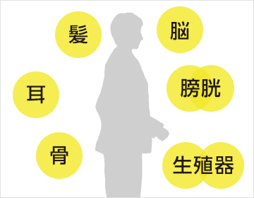 腎気が衰えると、腎がつかさどる部位の機能も低下してしまいます。
