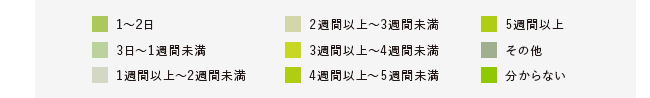 以下のデータは、鼻水・鼻づまりを伴う疾病に対し、医師が判断する目安の期間について問うたものです。