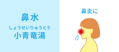 漢方薬は、眠気を催さずにさまざまなタイプの鼻水に効果が期待できます。水っぽい鼻水には小青竜湯(ショウセイリュウトウ)などがあります。