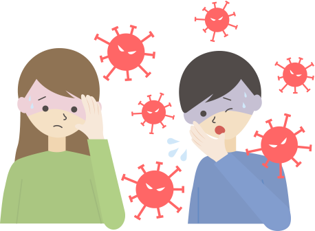 のどの痛みや痰は、ウイルスがのどや気道の粘膜に付着して炎症を起こすことが原因です。