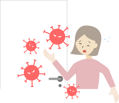 部屋の空気を定期的に入れ替えることも有効です。部屋の換気は、人が大勢集まっているときは1時間に2回以上おこなうようにします。空気の流れができるように2方向の窓やドアを開けるようにしましょう。