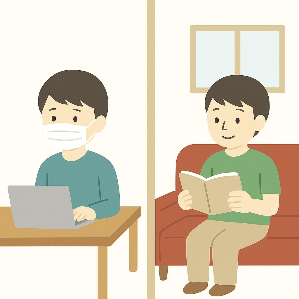 感染者がいる場合は、別の部屋を用意して隔離するのが理想です。特に感染者が療養する場所を分けることで、夜間を含めた接触リスクを減らせます。また、リビングやキッチンなど共有スペースの利用は最小限にして、可能な限り接触を避けるようにしましょう。