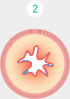 3つめは、たんが増えてしまった状態。気管支の大きさは変わらなくても、たんが増えた結果、空気の通り道が狭められ、ゴホゴホとせき込みも増えて息苦しくなります。