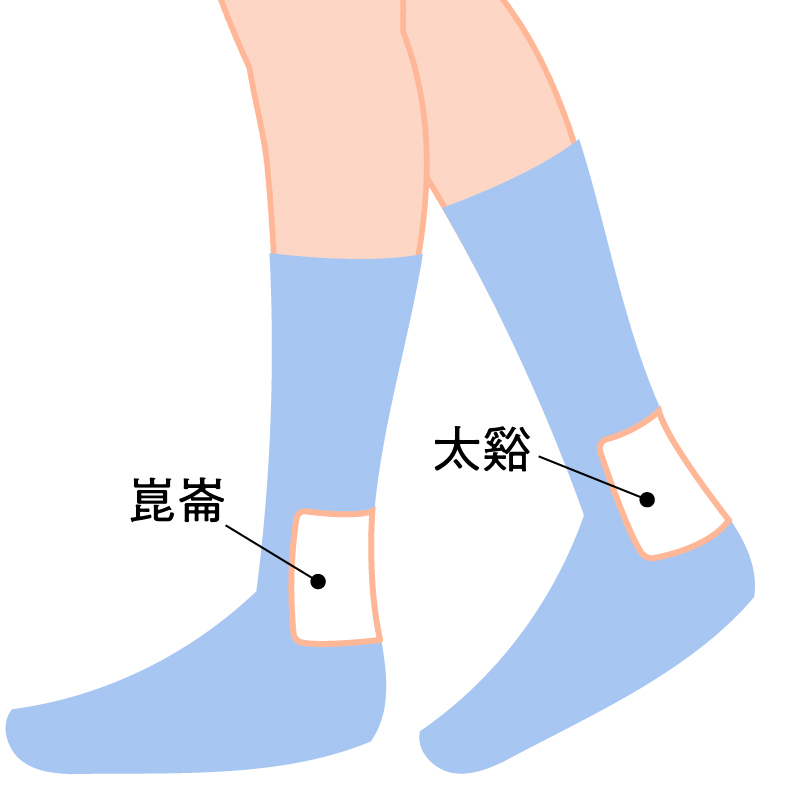アキレス腱を包み込むように、両足首に貼ることで、足首にある「太谿(たいけい)」と「崑崙(こんろん)」というツボを刺激。「全身の血流がよくなって、冷え症も改善できます」(宮下さん)