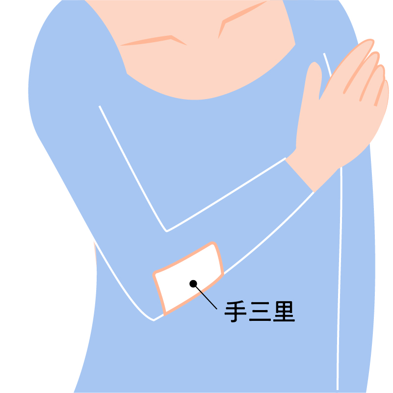 肩こりがある人は、両肩に30分ほど貼り、その後、左右のひじ付近にある「手三里(てさんり)」というツボに移して。