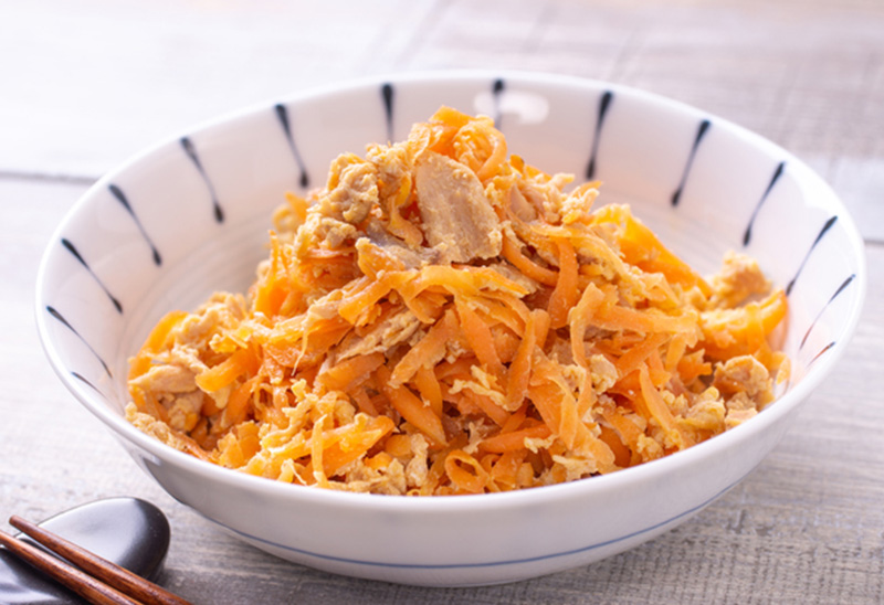 できれば皮をむかずに食べて。卵やツナと炒めるにんじんしりしりや、クミンとレモンで香りづけしたキャロットラペなら、食べやすく栄養の吸収も上がる。