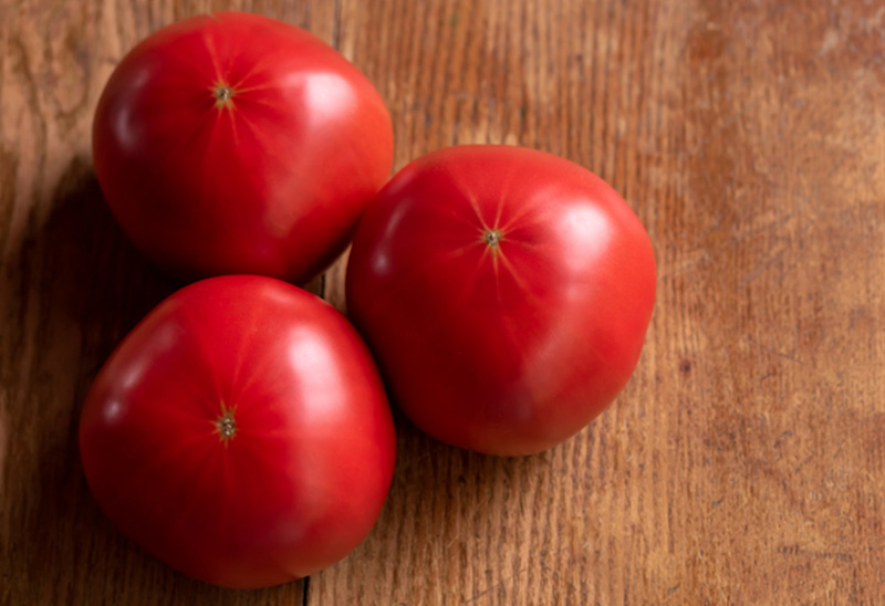 おいしいトマトを見分けるポイントの1つは、お尻側に白く“星形”のように筋が入っていること。加熱したりすりおろしたり刻んだりして細胞膜を壊すと、リコピンの吸収率が上がる。