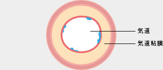 アレルギー物質などの影響で、これらが複合的に起きることで、気管支ぜんそくになると考えられています。