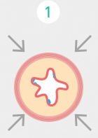 ぜんそくの症状が起こることを「ぜんそく発作」と呼びます。アレルギーなどによる炎症が原因で気道が狭くなり、呼吸が苦しくなる状態で、具体的には下の図のようなことが起きていると考えられています。