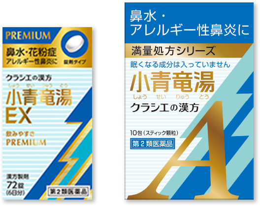 花粉症の特徴としては、透明で水のようにサラサラした鼻水が多量に出ることが多いものです。かぜのときのように、色の付いた鼻水が出ることはあまりありません。対策としてマスクや飲み薬のほか、鼻炎スプレーのような点鼻薬があり、飲み薬では主に抗ヒスタミン薬抗コリン成分、鼻炎スプレーでは抗ヒスタミン成分や抗アレルギー成分が用いられることが多いです。一方で、抗ヒスタミン成分の配合された飲み薬では、副作用として眠気が現れることがありますが、小青竜湯の場合は眠くなる成分が入っていないため、乗り物を運転する方や薬の服用によって眠くなっては困る方におすすめです。