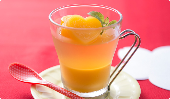 ゼリーを2層にし、さらにその上にハート型のゼリーをのせたことで可愛らしさ倍増。そのひと手間がお子様の食欲につながります。型はお家にあるもの何でもOK。バットなどに流し込んで固めてから型抜きしてもいいですね。