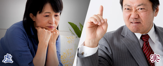 上記のような不足を指す虚証とは反対に、ほてり、イライラ、興奮といった機能亢進を指す実証に対しては「黄連解毒湯(おうれんげどくとう)」「女神散(にょしんさん)」などの処方を用います。これらの処方にはすべて熱を鎮める「黄連(おうれん)」が含まれており、イライラの症状を抑えます(「肝火(かんか)」を鎮めるという)。