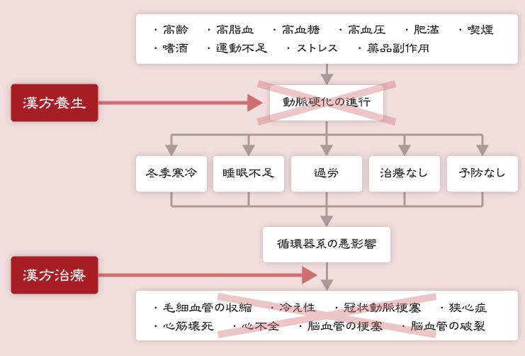 しかし、冬であっても、漢方の考えに則った養生法を行い体質改善させることで、冬の寒さによる循環器系への悪影響を予防することが可能になります。とくに、動脈硬化によってこうした疾患のリスクが高い人にはおすすめしておきたいところです。