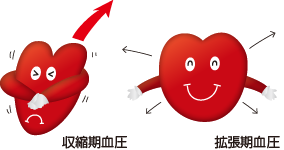 心臓が収縮して血液を送り出したときが一番圧力が大きくなり、これを収縮期血圧(最大血圧)といいます。