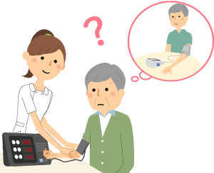 医療機関での血圧(診察室血圧)は正常なのに、家庭などでの血圧が高くなること。