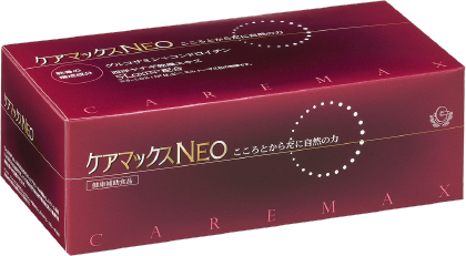 「ケアマックスNEO」は、「グルコサミン」と「コンドロイチン硫酸」を主原料とした健康補助食品です。グルコサミンはヒトを含む動物の軟骨などに含まれる糖の一種です。コンドロイチン硫酸は、フカヒレなどに含まれるヌルヌルのもと「ムコ多糖類」の一種です。もともと身体の中にあって、その保水性と弾力性が身体の柔軟な動きに関与しています。