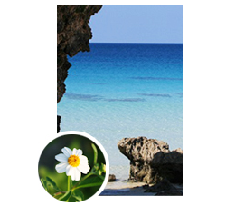 宮古島の大自然の中で育ったキク科の「タチアワユキセンダングサ(学名:ビデンス・ピローサ)」は、地元では「ムツウサ」などと呼ばれ、昔から親しまれています。タチアワユキセンダングサは「コセンダングサ」の変種ですが、そのコセンダングサは種類も多く、世界中に分布し、各地で昔から食べられてきました。発展途上国では、ビタミンEの補給源としても評価されています。 日本では、ドクダミなどと同様、民間の健康法で多目的に使われ、煎じてハーブ茶のように飲まれていたようです。 このタチアワユキセンダングサは強い生命力で知られ、厳しい宮古島の環境下において、珊瑚が隆起してできた固い岩の隙間からでもしっかりと根を下ろす、その逞しさには目を見張るばかりです。この強い生命力に着目し、化学肥料や堆肥、農薬などを一切使用せず育てられたのが、「ケアピローサN」に使われている「宮古ビデンス・ピローサ」です。