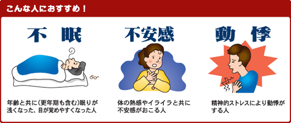 ●体質虚弱な人の、不眠、不安感、息切れ、動悸などの症状に効果があります。