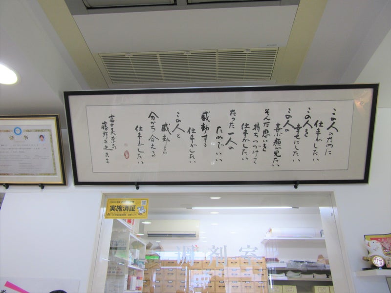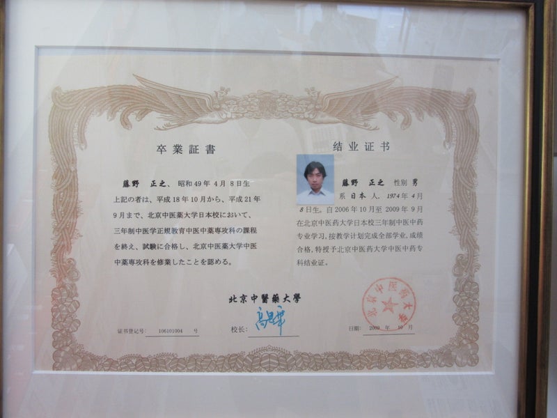 藤野先生が漢方の学問を極めた証が掲示されています。