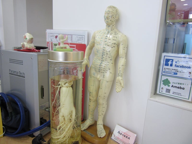 相談机にはこうした血管模型や、経絡(けいらく)が書かれた人体模型なども置かれていました。