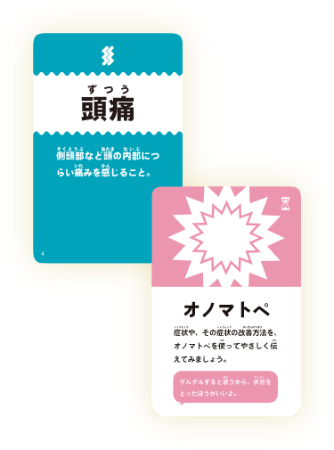 ・セラピーワードをかける時、「症状カード」にかかれている症状名が含まれる単語を使用することはできません。