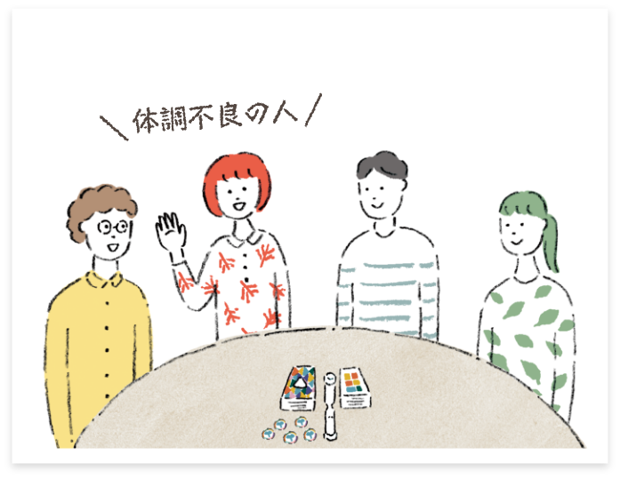 ・「体調不良の人」は、自分の「症状カード」について 質問することはできません。