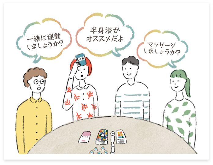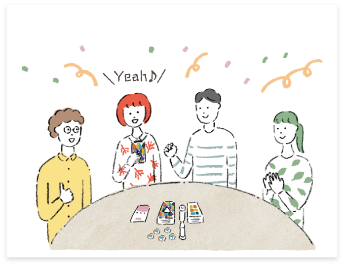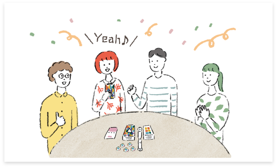 - 「この人の言葉はやさしいな」「症状に気づかせてくれたな」と思った人に贈られるセラピーチップを先に3枚集めた人、もしくはチップがなくなったときに1番多くセラピーチップを持っていた人が勝ちとなります。