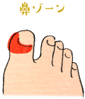 「鼻ゾーン」を爪に沿ってL字になるように、親指でこする。