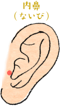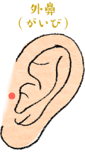 「晴明」「鼻通」は、鼻の通りを良くして、鼻粘膜機能を高めます。「晴明」は目の疲れやかゆみにも効果があります。また、毎日ツボ押しを続けることで、慢性鼻炎や蓄膿症を徐々に軽減していくことができます。
